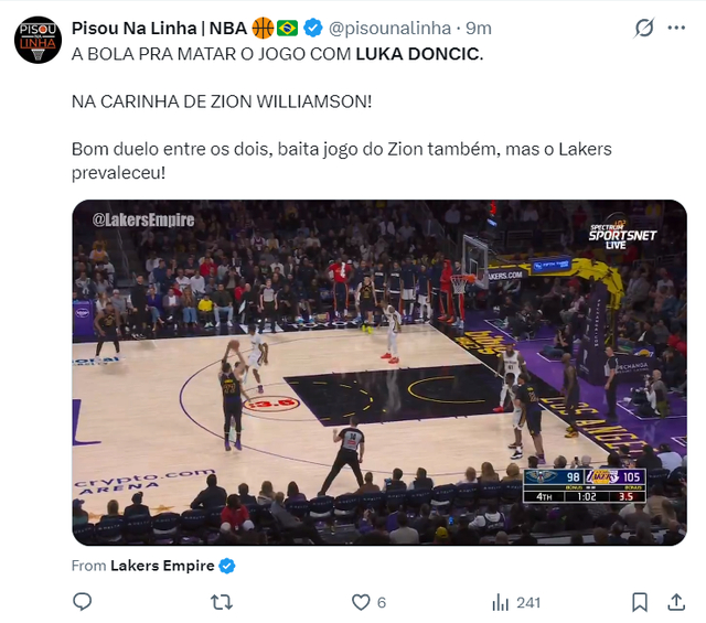 北京时间3月4日,湖人110-101击败鹈鹕拿到三连胜。这场比赛东契奇、詹姆斯两人都拿到20+,里夫斯此役表现不佳15投仅4中,在末节实现逆转主要还是依靠防守,在落后8分时雷迪克的暂停生效,湖人一波12-0开始掌控局势,最终湖人完成了逆转大胜。